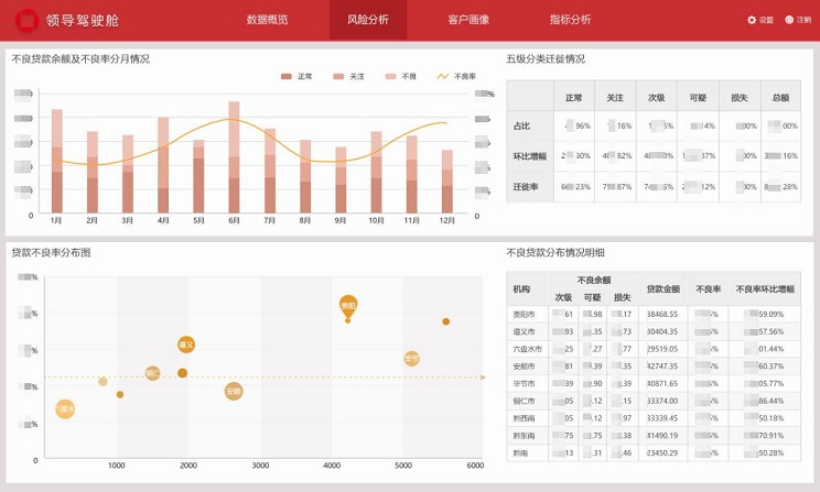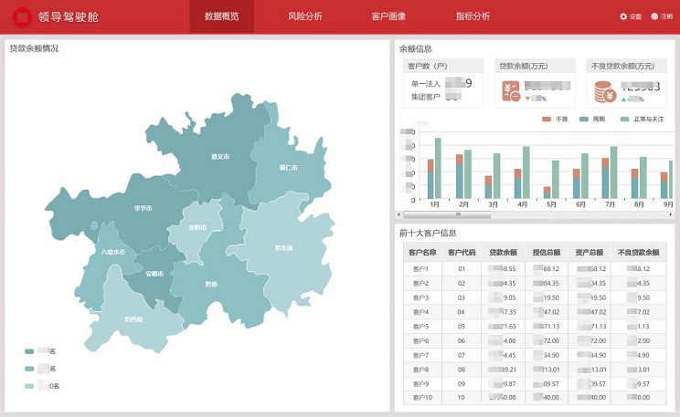系統(tǒng)覆蓋了客戶風(fēng)險月報的常用固定報表、分析報表、綜合查詢、等業(yè)務(wù)需求;同時為了滿足各級領(lǐng)導(dǎo)快速直觀地了解掌握全行客戶風(fēng)險情況的需要,開發(fā)實現(xiàn)了領(lǐng)導(dǎo)駕駛艙功能;為了滿足業(yè)務(wù)人員能夠靈活便捷地對財政收支數(shù)據(jù)進一步分析,開發(fā)實現(xiàn)了自助分析功能。