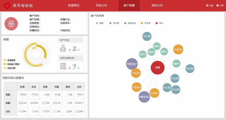 本系統(tǒng)分為八大功能模塊:客戶風(fēng)險統(tǒng)計報表、標準庫、舉證反饋、即席分析財務(wù)報表、固定報表、客戶關(guān)系網(wǎng)、擔(dān)保鏈、領(lǐng)導(dǎo)駕駛艙。