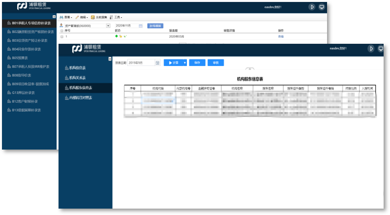 浦銀租賃大數(shù)據(jù)服務(wù)平臺(tái)一共建設(shè)了183張報(bào)表,涵蓋日常工作報(bào)表、財(cái)務(wù)報(bào)表、監(jiān)管報(bào)送、1104報(bào)表、人行報(bào)表、總行報(bào)表、EAST報(bào)表等,滿足公司領(lǐng)導(dǎo)、資產(chǎn)部門、財(cái)務(wù)部等各部門人員多樣化的數(shù)據(jù)分析需求。幫助高管快速掌握公司的運(yùn)營(yíng)情況,精細(xì)化管理;讓業(yè)務(wù)人員自助拖拽報(bào)表,釋放實(shí)施人員精力,為業(yè)務(wù)人員提供工作便利,提高工作效率;支持監(jiān)管報(bào)表的填報(bào)、審核、上報(bào)、匯總等工作,滿足監(jiān)管報(bào)表的定時(shí)報(bào)送要求。