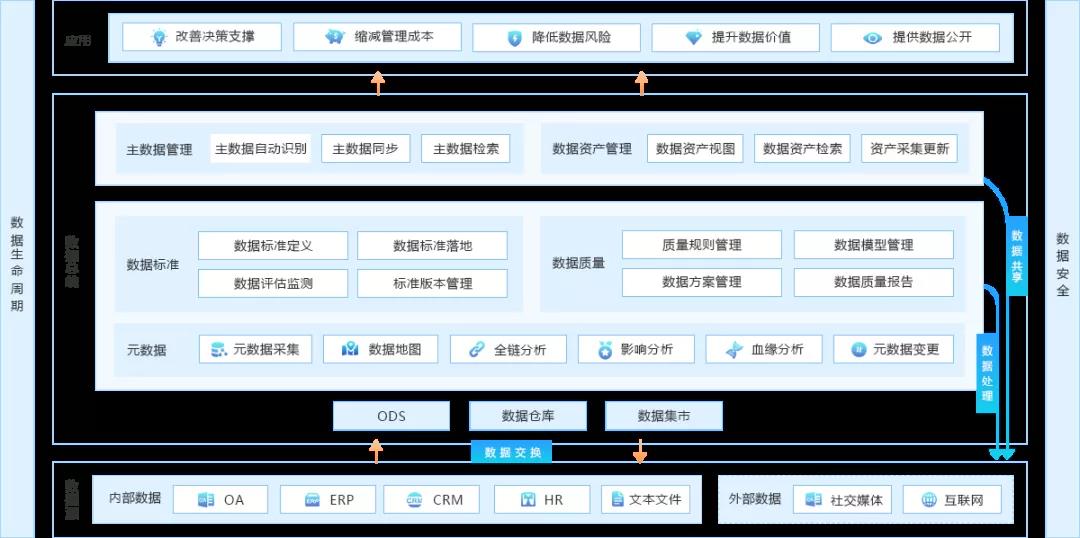 也正是憑借大數據領域的經驗沉淀,億信華辰積極布局數據治理領域,百余次產品迭代,打磨出睿治智能數據治理平臺并榮獲DAMA中國數據治理優秀產品獎,形成包含元數據管理、數據標準管理、數據質量管理、主數據管理、數據資產管理、數據安全管理、數據交換管理、數據處理管理、數據生命周期管理等九大功能模塊的數據治理產品方案,可自由組合快速滿足政企用戶數據治理全場景應用,助力數據標準落地,提升數據質量,實現數據資產化。