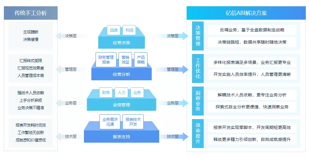 億信ABI滿足用戶從數(shù)據(jù)填報(bào)、ETL數(shù)據(jù)處理、數(shù)據(jù)建模到數(shù)據(jù)分析、