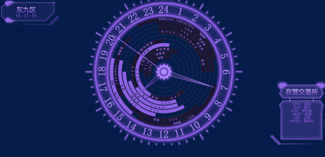 主視覺圖表作為大屏的視覺中心,一般放在中間位置,用于呈現核心指標和重要信息,通常帶有炫酷的動效,給人帶來視覺的震撼效果。