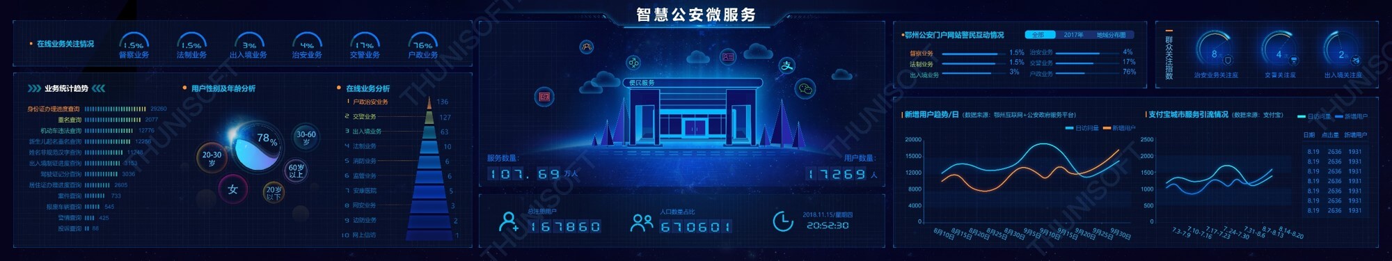 智慧公安實(shí)戰(zhàn)應(yīng)用包括了智慧搜索、智慧建模、智慧服務(wù)、智慧監(jiān)督、智慧標(biāo)簽、智慧小區(qū)、智慧管控以及智慧監(jiān)測(cè),實(shí)現(xiàn)個(gè)人檔案的查詢,同時(shí)關(guān)聯(lián)社會(huì)關(guān)系和活動(dòng)軌跡并繪制出關(guān)系網(wǎng)絡(luò)圖,通過(guò)建模顯示各模型使用情況和資源訪問(wèn)量、訪問(wèn)趨勢(shì),進(jìn)行在線業(yè)務(wù)分析,各類警務(wù)案件指標(biāo)分析,根據(jù)標(biāo)簽標(biāo)準(zhǔn)生成人員畫像,通過(guò)重點(diǎn)人員異常軌跡進(jìn)行警情監(jiān)測(cè),根據(jù)熱點(diǎn)追蹤進(jìn)行傳播路徑分析,實(shí)現(xiàn)公安智慧化管理。